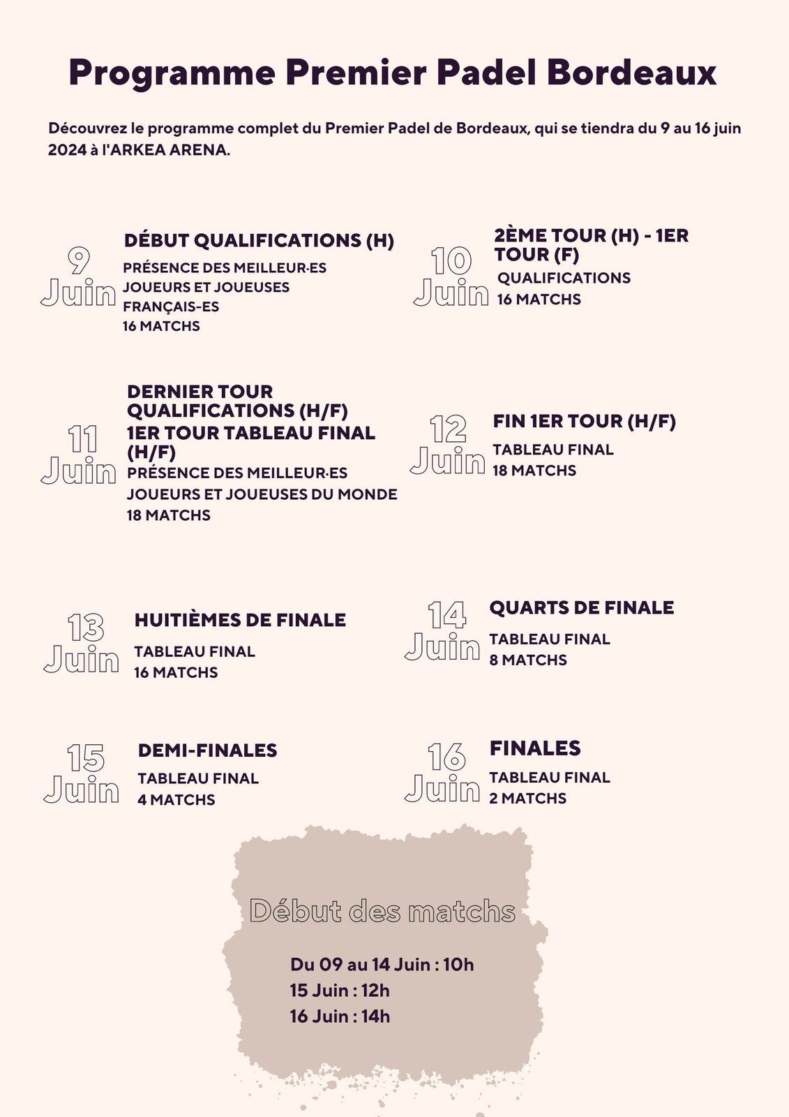 La première édition de Bordeaux Premier Padel se tiendra du 9 au 16 juin 2024 à l’ARKEA ARENA, marquant la première fois que cette prestigieuse enceinte accueille une compétition sportive officielle.