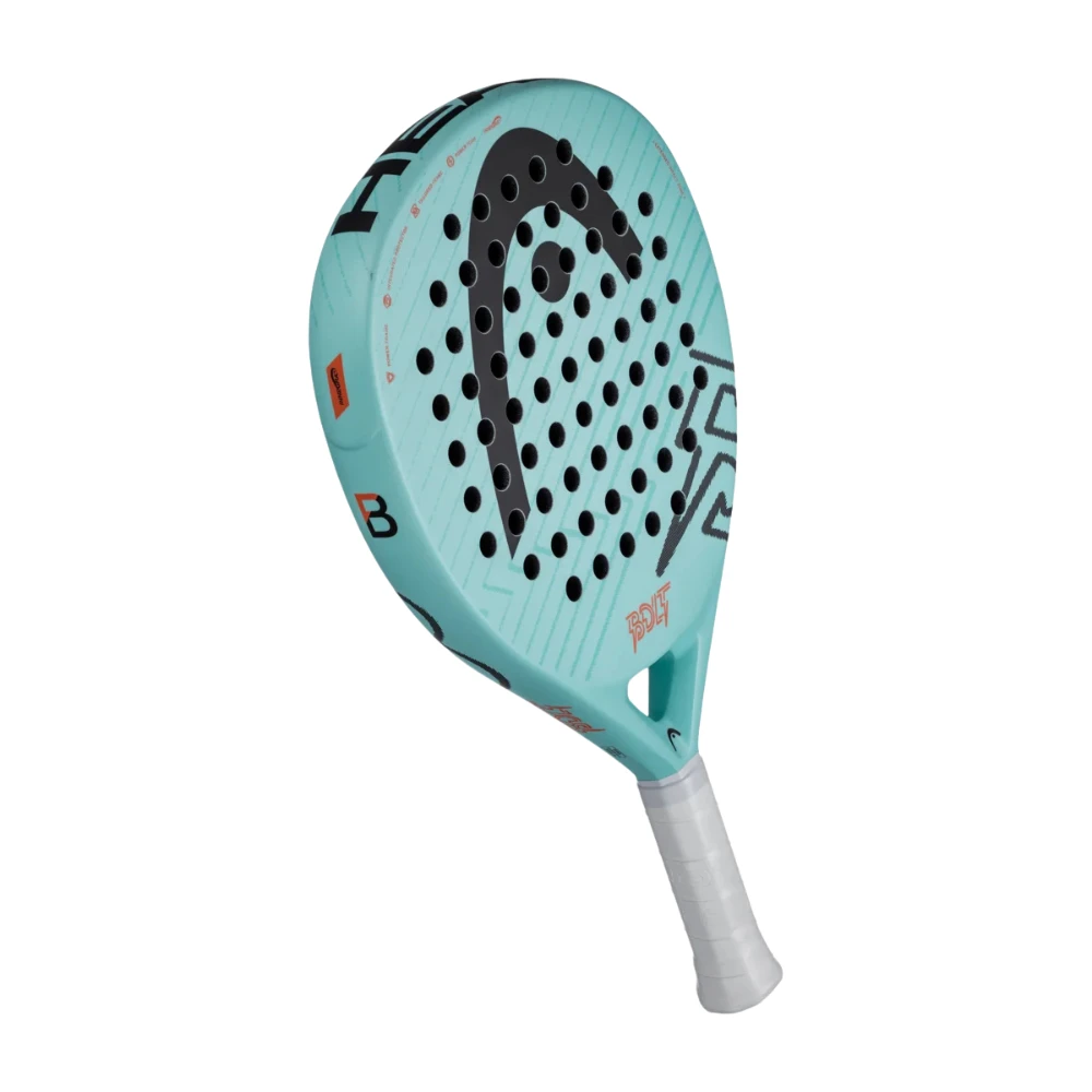 The HEAD Bolt TL BK features an elegant and modern design combining blue and white. Its sober yet dynamic look makes it easily recognizable on the padel court. Designed in a teardrop shape to optimize both power and control, its frame maximizes performance, maneuverability, and shot precision.